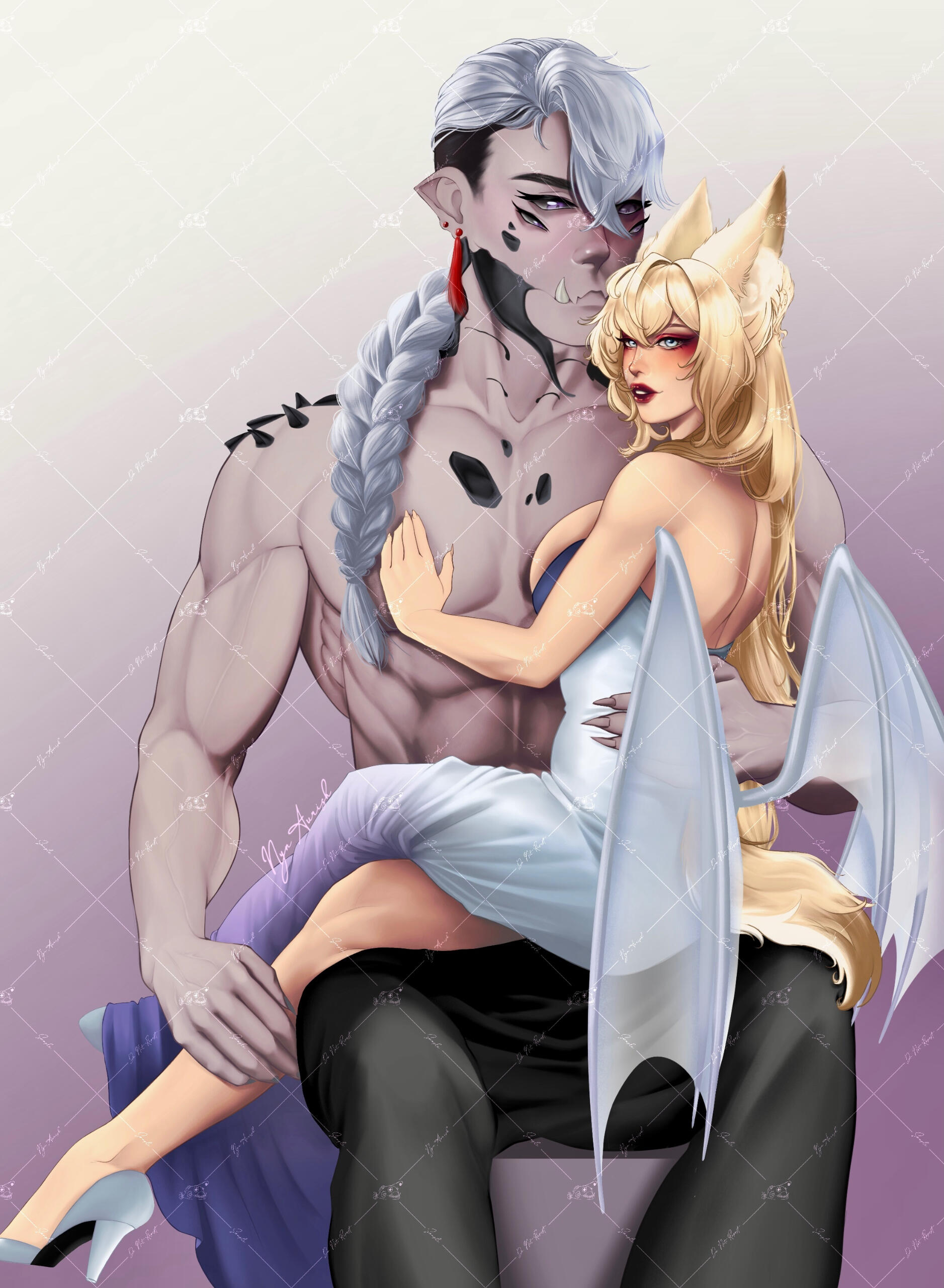 2.- All commissioners will receive two versions of the final piece, a Watermaked and a Non-watermarked version to ensure safe publishing. It's up to the customer's discretion to use it or not.